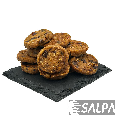 Cookies: Farina di grano tenero 00, Burro, Uovo, zucchero di canna, Frutta a guscio, massa di cacao, burro di cacao, agente lievitante, lecitina di Soia, sale.